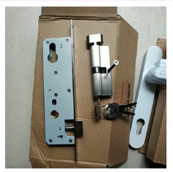 bộ khóa bao gồm 2 tay nắm trong ngoài thân khóa, lõi khóa, miệng đón khóa, trục vít đầy đủ dễ dàng lắp đặt thay thế,