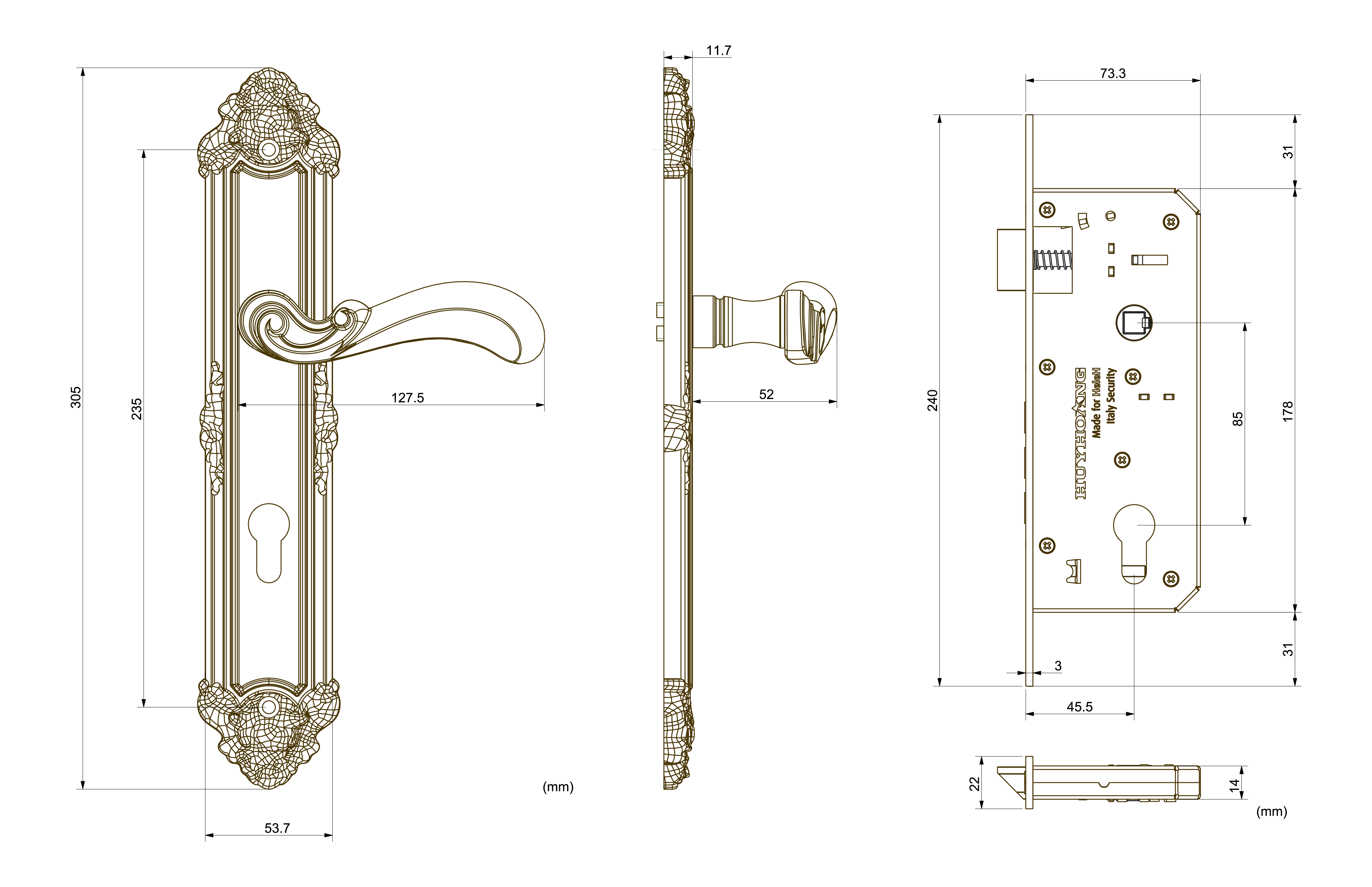 Tay ốp khóa sản xuất bằng vật liệu đồng vàng (đồng thau) mạ PVD màu vàng gold