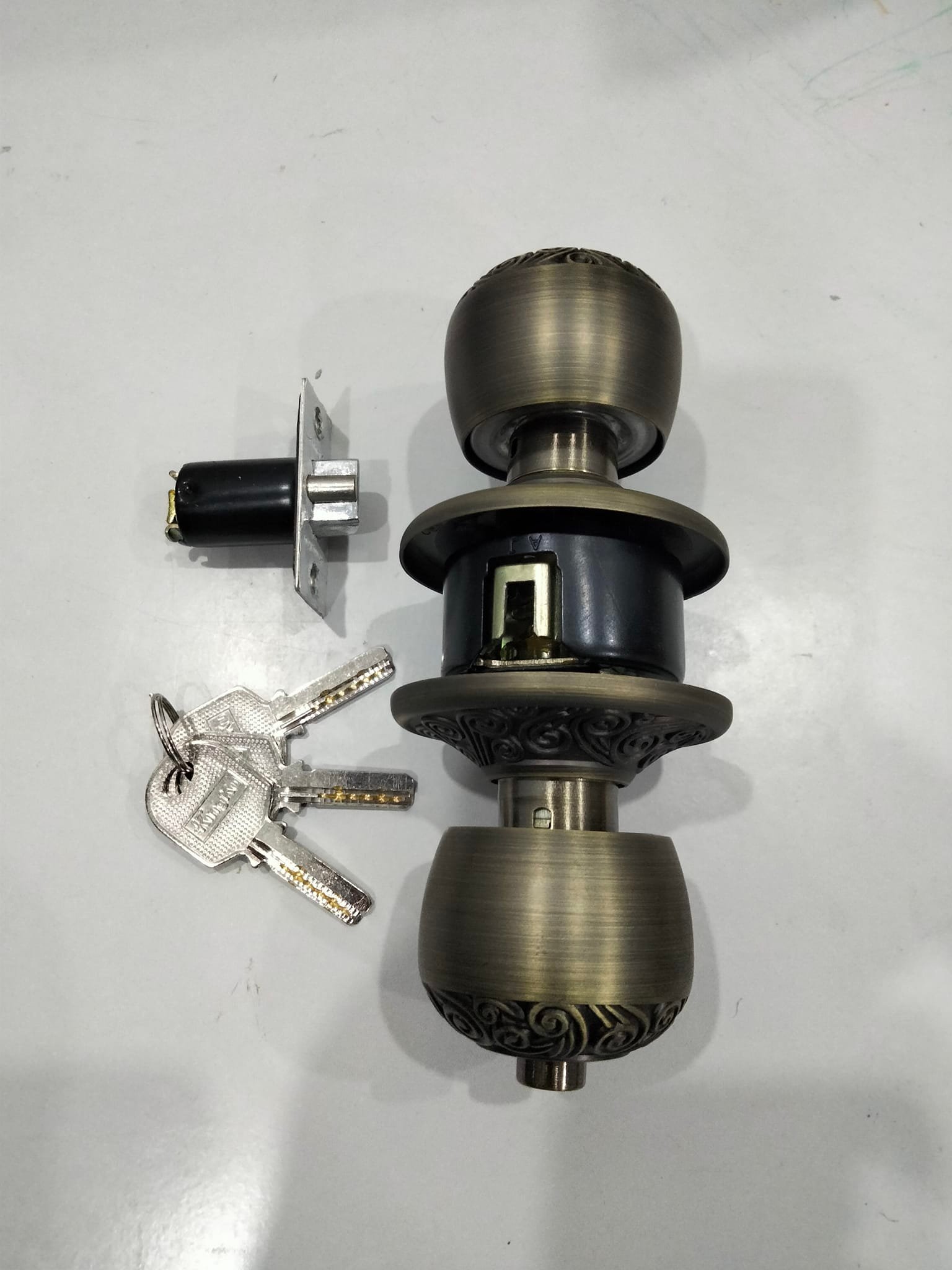 + Đóng gói: 1 khóa tay nắm tròn + 1 cò khóa + 1 bá khóa + 3 chìa + 1 bộ vít